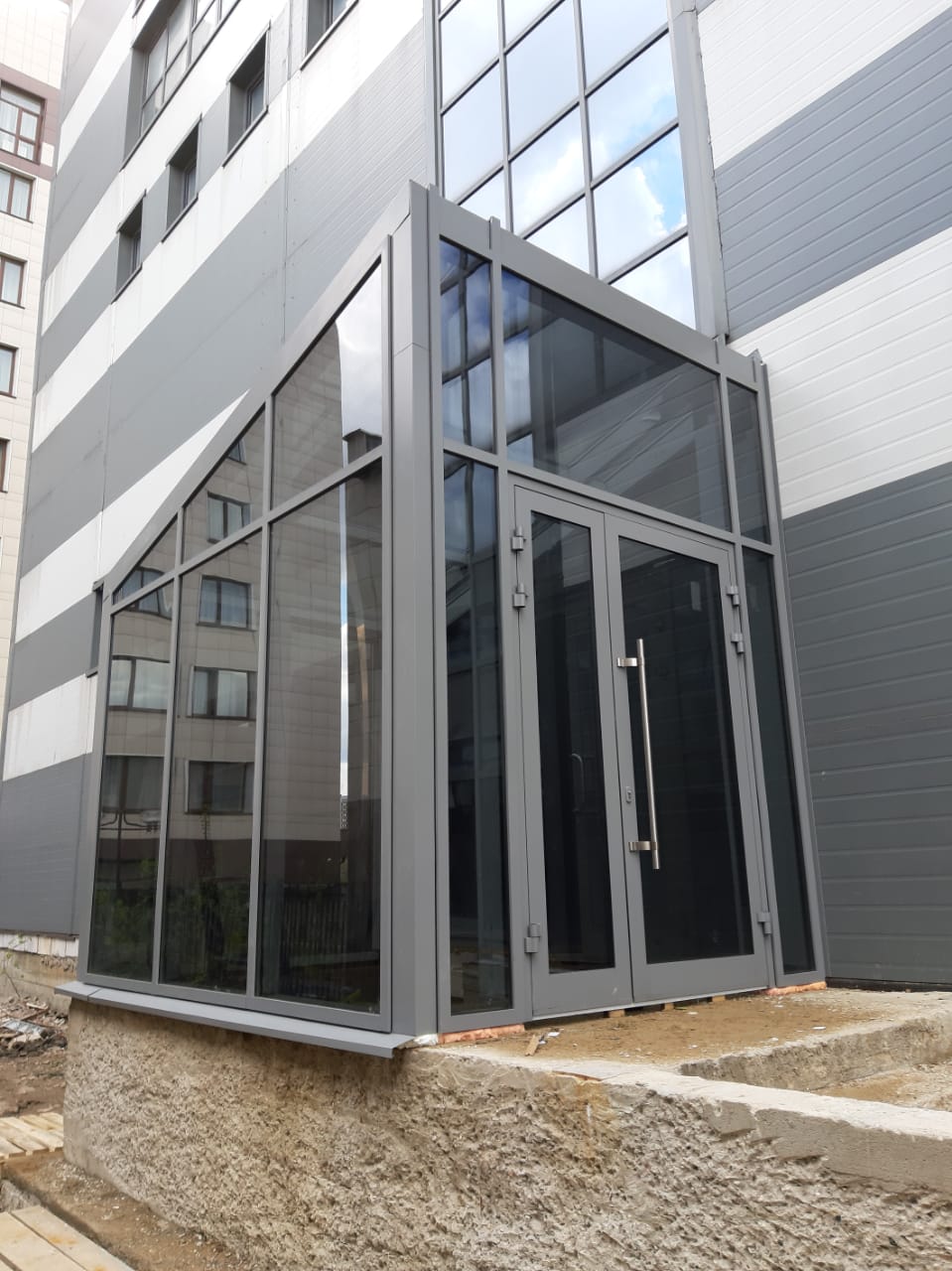 Наша организация осуществляет проектирование, производство и монтаж входных групп из алюминиевых светопрозрачных конструкций с учётом всех требований заказчика. По вашему желанию мы разработаем любой дизайн и устройство зон входа для идеального сочетания с фасадом здания и интерьером внутри.