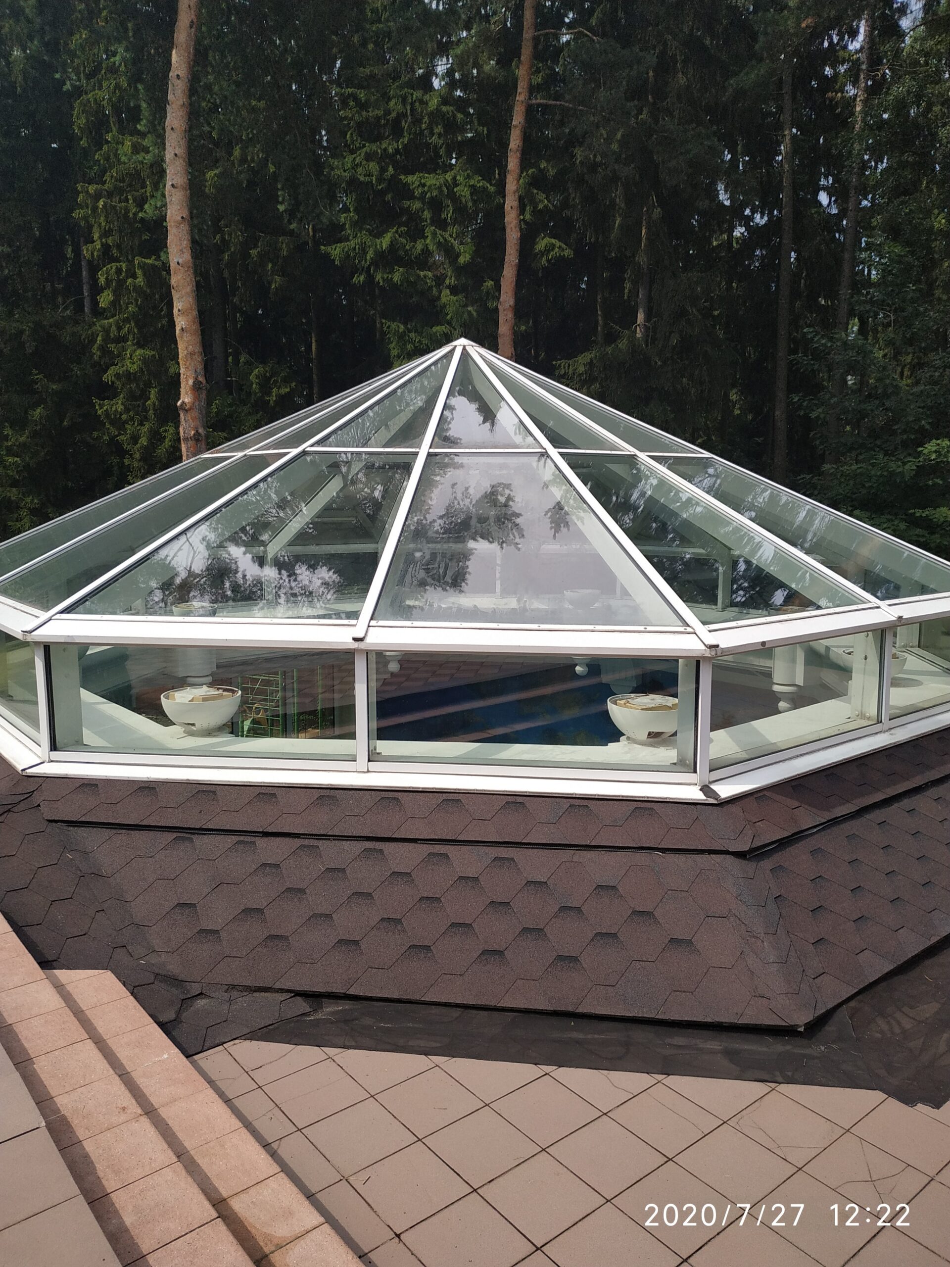 Каркас изготавливают из алюминия. Если зенитный фонарь большой площади, то устанавливают металлическую подконструкцию. Каркас дополняется триплексом, безопасным стеклопакетом, либо любым непрозрачным материалом.